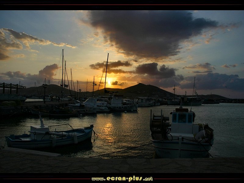 Coucher de soleil sur le port de Naoussa - Cyclades - Grèce - © EcranPlus