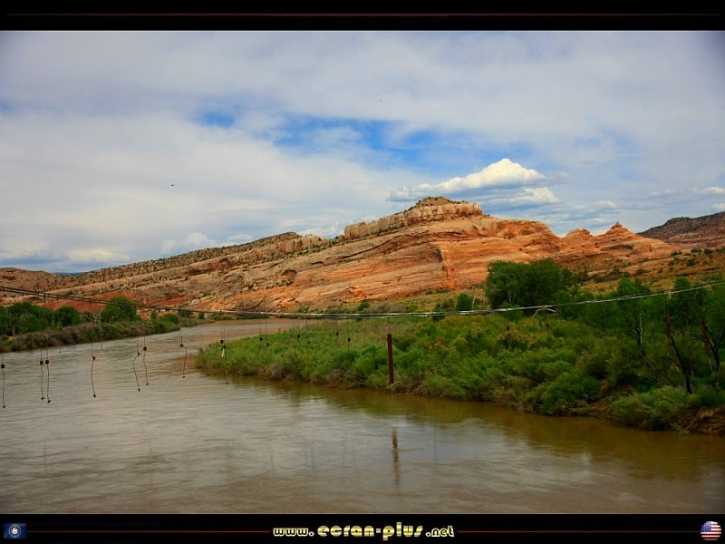 L`ancien pont suspendu de Dewey sur le Colorado dont il ne deste que les Suspentes - Dewey - Utah - USA - © EcranPlus