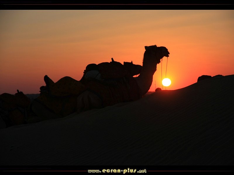 Coucher de soleil sur un dromadaire dans le désert du Thar - Rajasthan - Inde - © EcranPlus