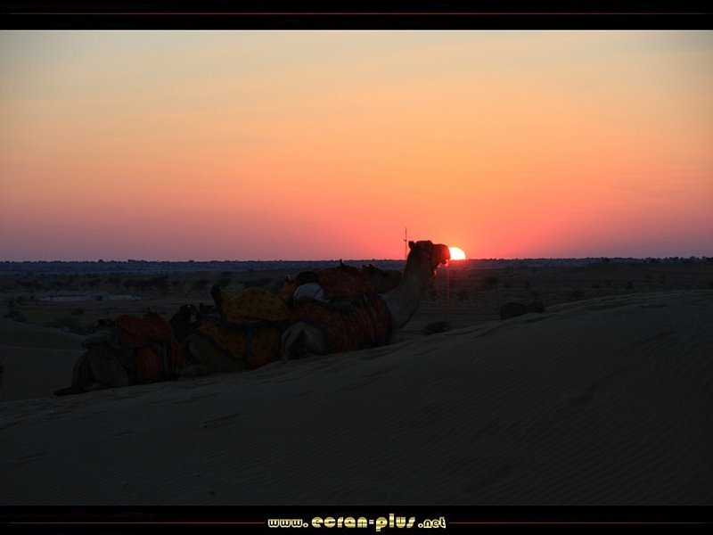 Coucher de soleil sur un dromadaire dans le désert du Thar - Rajasthan - Inde - © EcranPlus