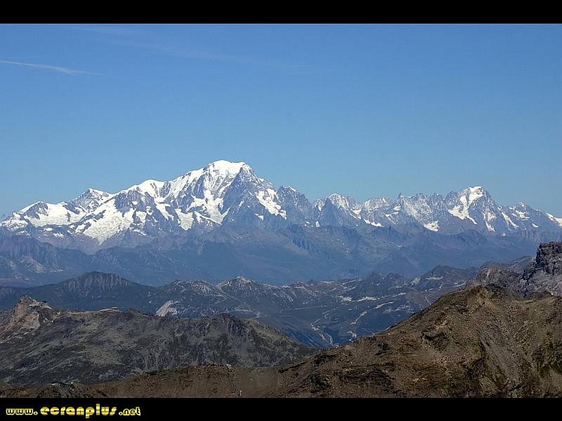 Le massif du Mont Blanc vu de la cime Caron (distance 62km) - © EcranPlus