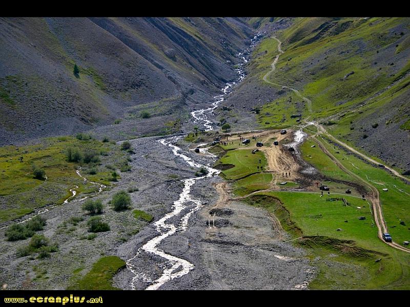 Marrant le torrentqui serpente. La netteté est bonne pour une vue en roulant...