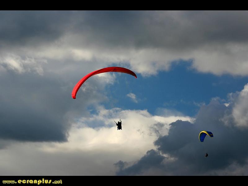 Parapente au dessus du lac d`Annecy au col de la Forclaz (74) - © EcranPlus