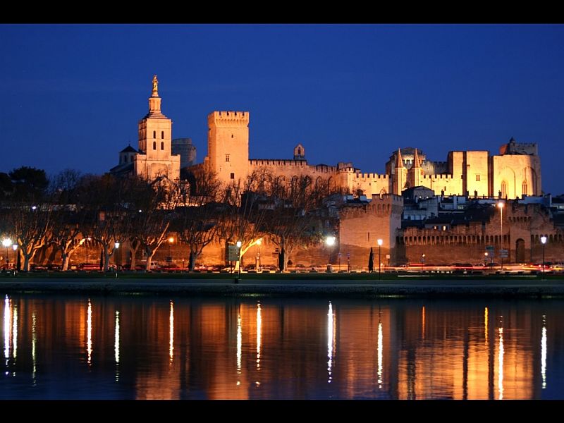 Vue nocturne d`Avignon prise de la rive droite du Rhône - © bernes