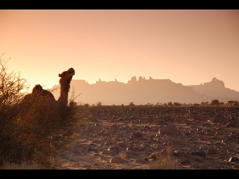 Encore une vue magnifique ! Ce reg avec le dromadaire et les montagnes de roche qui se découpent en arrière plan ! Bravo !