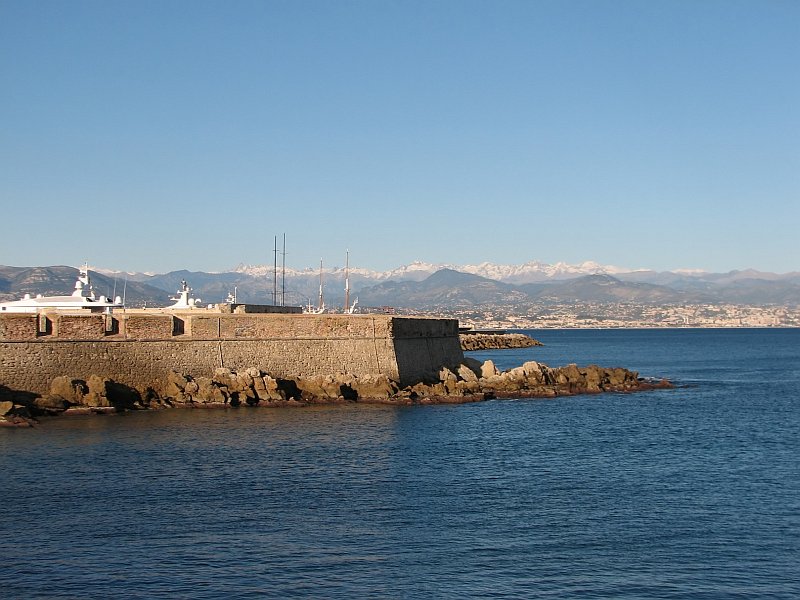 Jolie vue d'ensemble avec les remparts, le port et les Alpes.