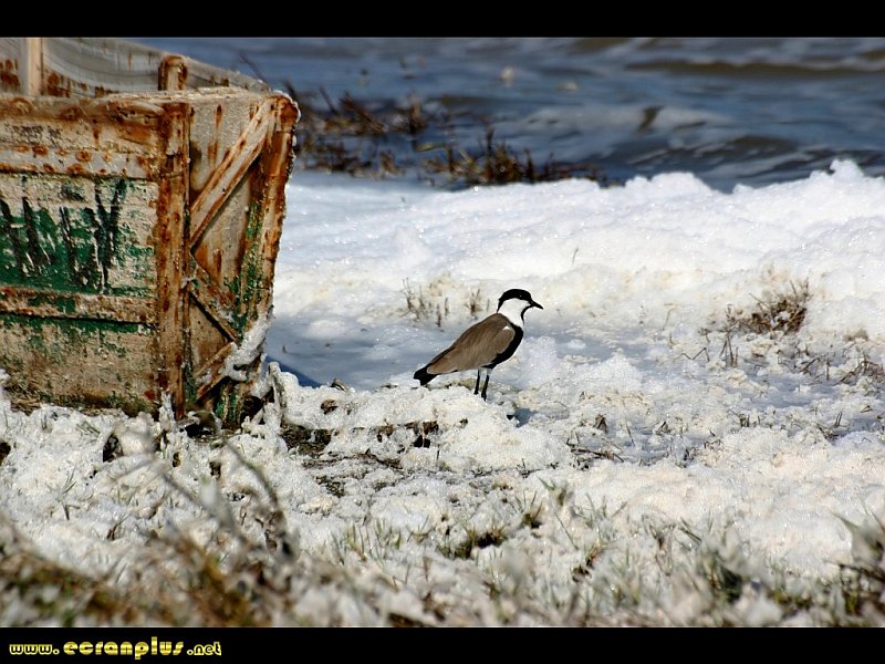Oiseau dans la mousse de sel au bord du Lac Rose (lac Retba) - Sénégal - © EcranPlus
