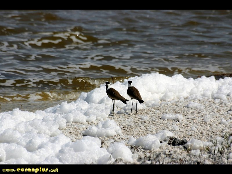 Oiseaux dans la mousse de sel au bord du Lac Rose (lac Retba) - Sénégal - © EcranPlus