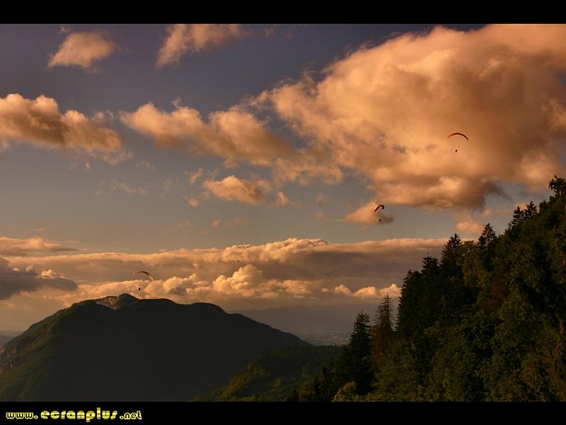Parapentes dans le ciel de soir au Col de la Forclaz (74) - © EcranPlus