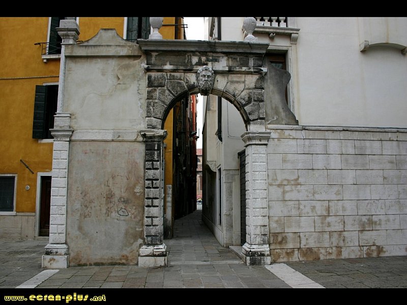 Bie vu avec la porte, la maison ocre et la ruelle qui donne sur le canal