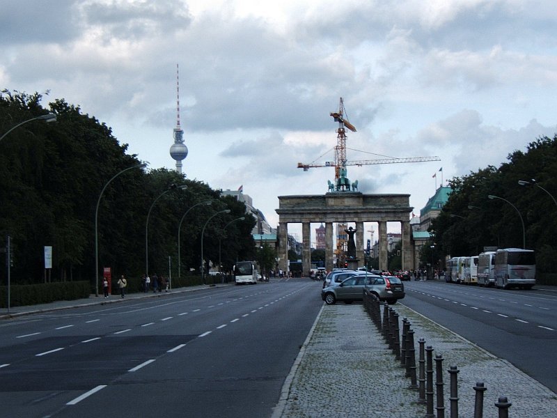 Les trois symboles de Berlin : La porte de Brandebourg, la tour TV et les grues - © vincent