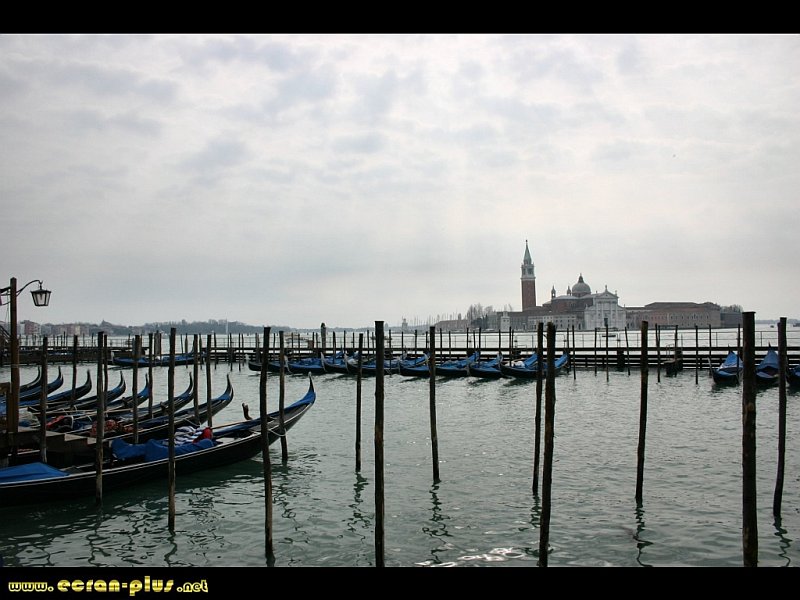 Gondoles et vue sur l`île de San Giorgio Maggiore - Venise - © EcranPlus