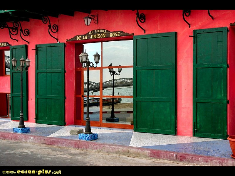 Reflet du pont Faidherbe dans la vitre miroir d`une auberge à Saint Louis du Sénégal - © EcranPlus