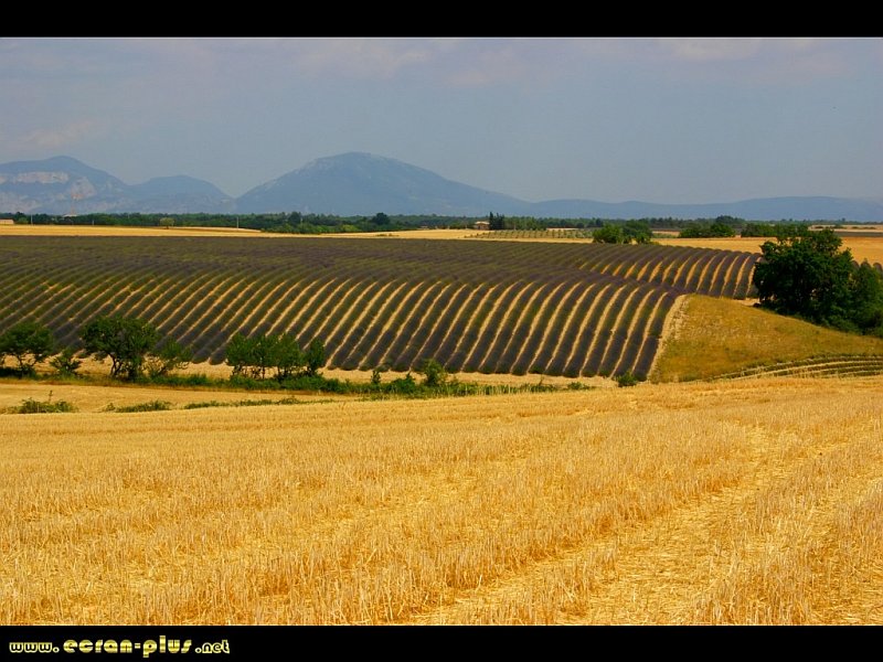 Merveilleux ce contraste de couleurs entre champ de blé et de lavande