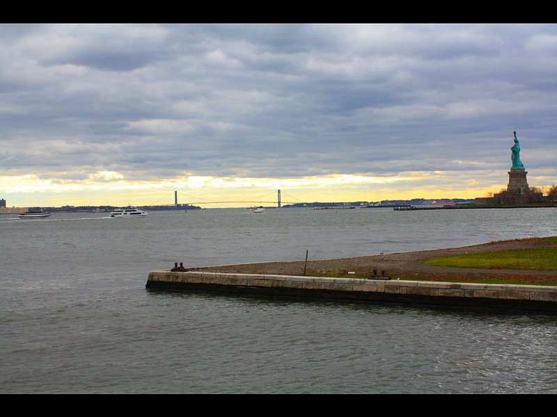 Point d`Ellis Island, baie de l`Hudson et pont de Brooklyn - New York - © vincent