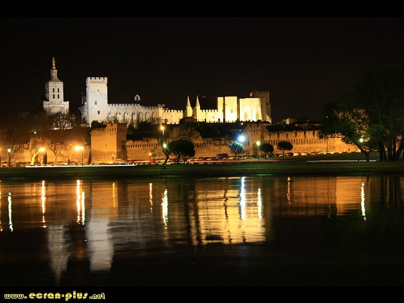 Le palais des Papes illuminé qui se reflète dans le Rhône - Avignon (84) - © EcranPlus