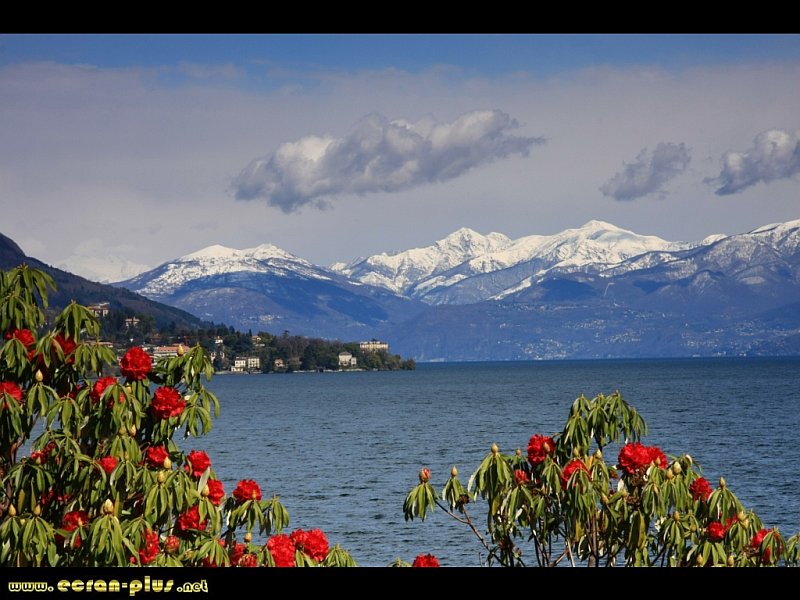 Les Alpes et le lac Majeur avec des fleurs en premier plan - Isola Bella - Italie - © EcranPlus