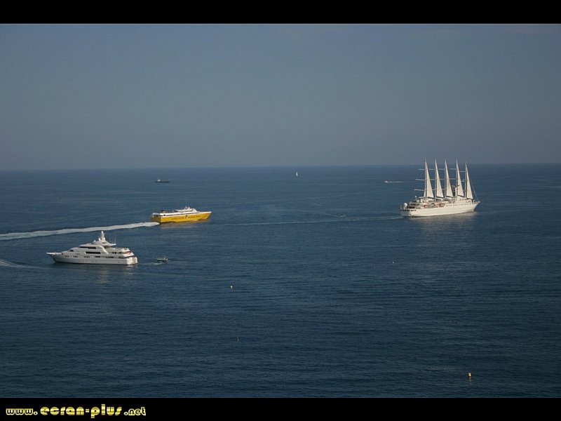Le Club Med II et un NGV quittant le port de Nice croisent un yacht entrant dans le port - © EcranPlus
