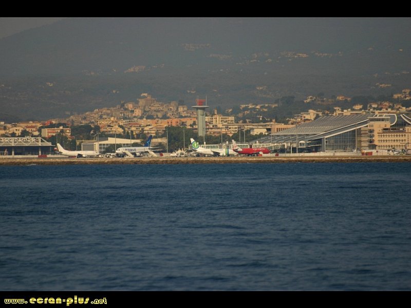 L`aéroport Nice T1 depuis la mer. - © EcranPlus