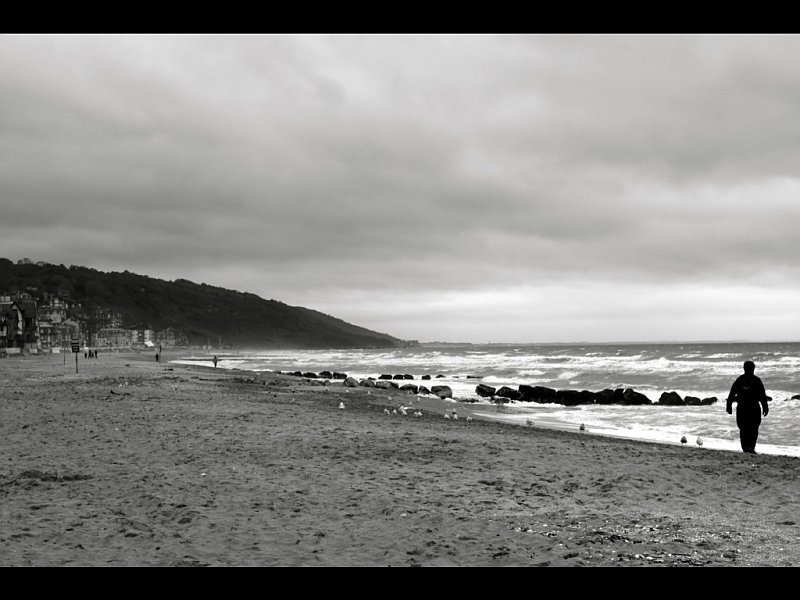 Promeneur bravant la bruine sur la plage - Villers sur Mer (14) - © vincent