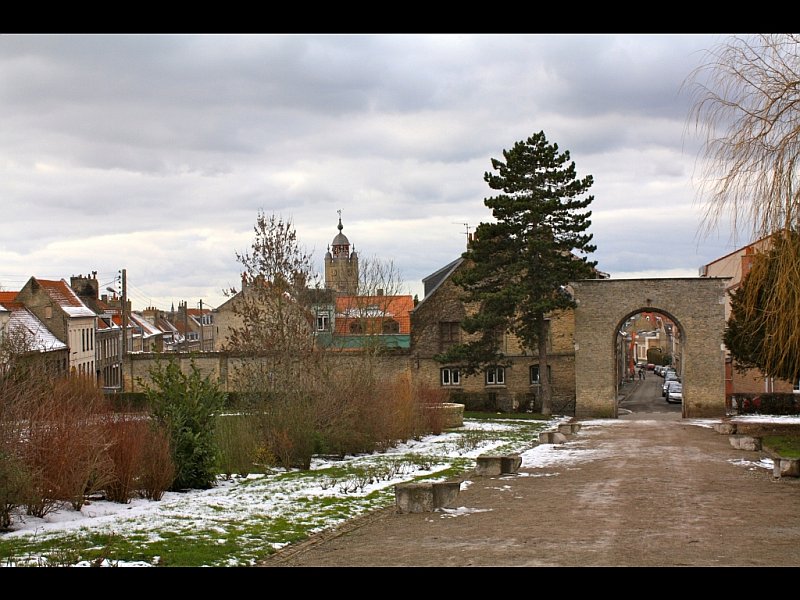 Vue de la ville et du beffroi depuis l`abbaye de Saint Winoc - Bergues (59) - © vincent