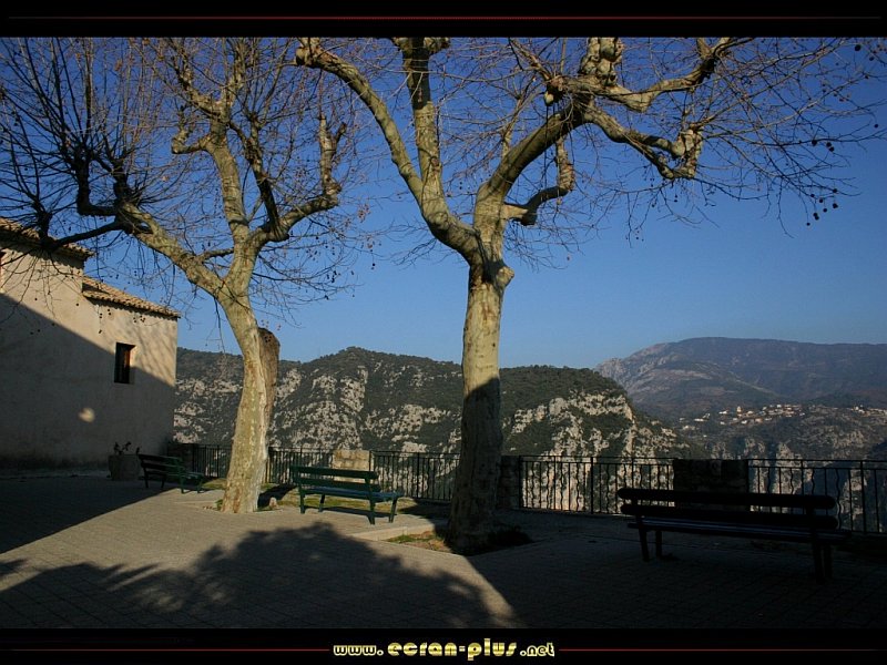 Place du village dominant la vallée du Var - Bonson (06) - © EcranPlus