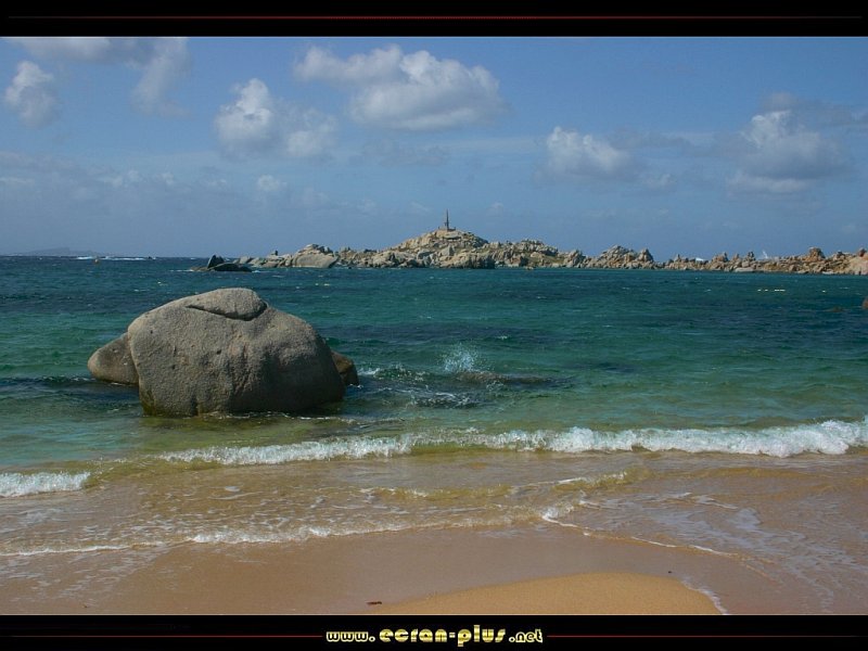 Plage de l`île Lavezzi et pyramide de la Sémillante - Corse - © EcranPlus