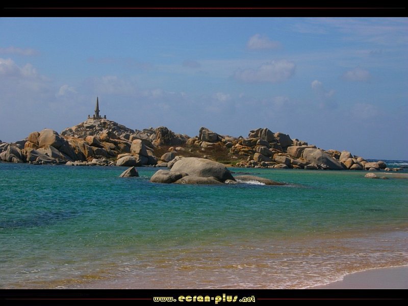 Plage de l`île Lavezzi et pyramide de la Sémillante - Corse - © EcranPlus