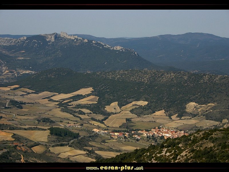 Vue sur le chateau de Peyrepertuse et le village de Cucugnan depuis le chateau de Queribus (11) - © EcranPlus