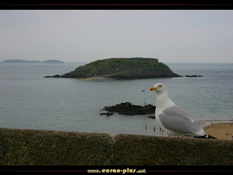 Mouette sur le mur des remparts de Saint Malo et ilôts face à la plage (35) - © EcranPlus