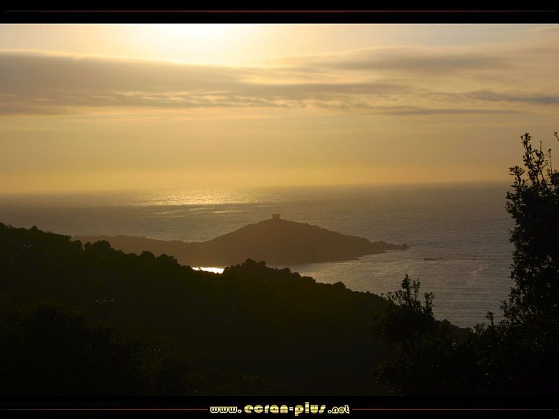 Coucher de soleil sur la pointe de Campomoro et sa tour génoise - Corse - © EcranPlus