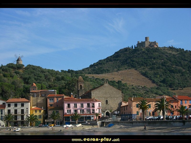 La plage, le moulin, le chateau à Collioure (66) - © EcranPlus