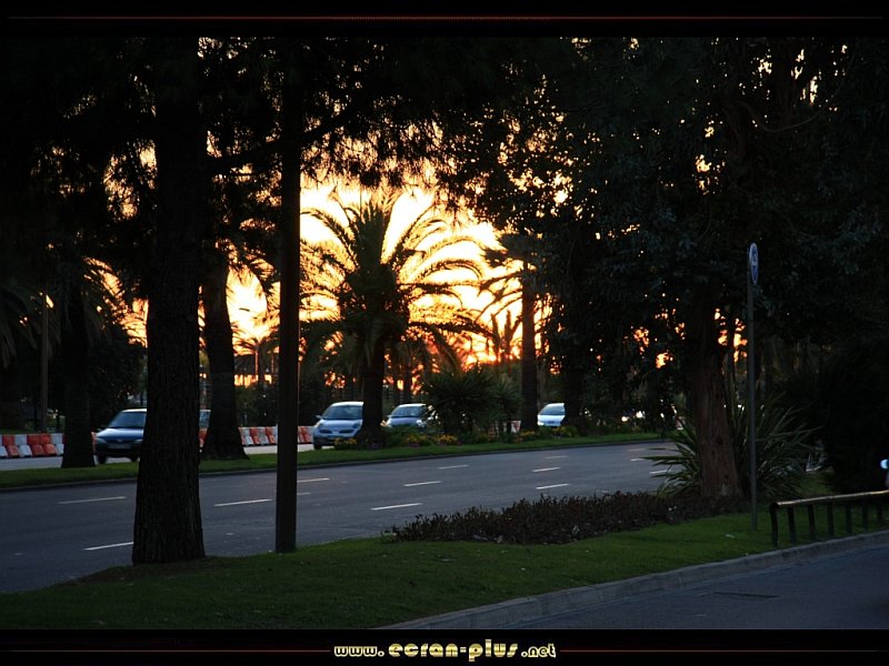 Coucher de soleil sur la Promenade des Anglais face à l`aéroport - Nice - © EcranPlus