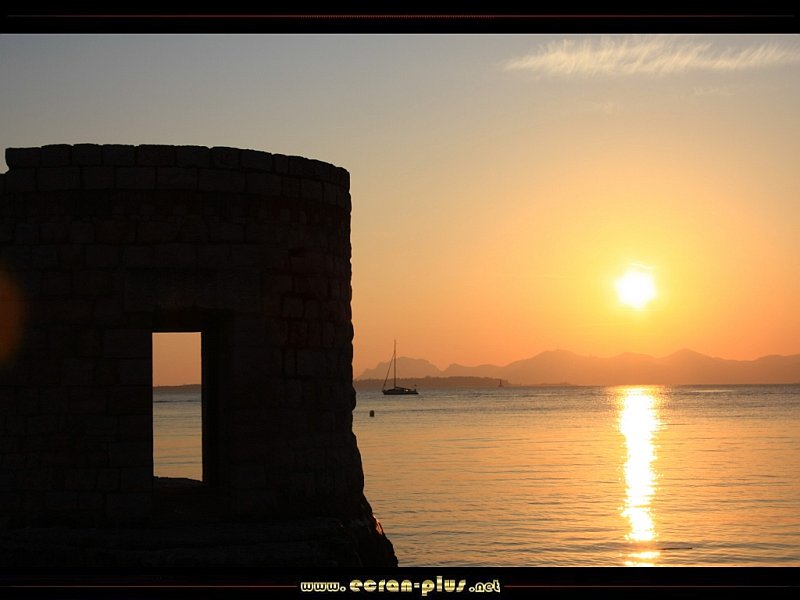 Coucher de soleil sur l`Esterel, la baie de Juan les Pins et la tour de l`ancien port du Cap d`Antibes (06) - © EcranPlus